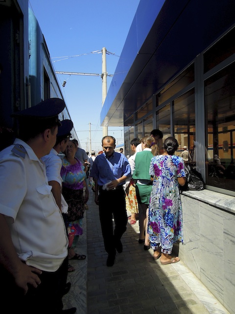Une vendeuse de pain huilé se faufile sur le quai pour essayer de vendre sa marchandise avant que le train en reparte. Romain Nosenzo